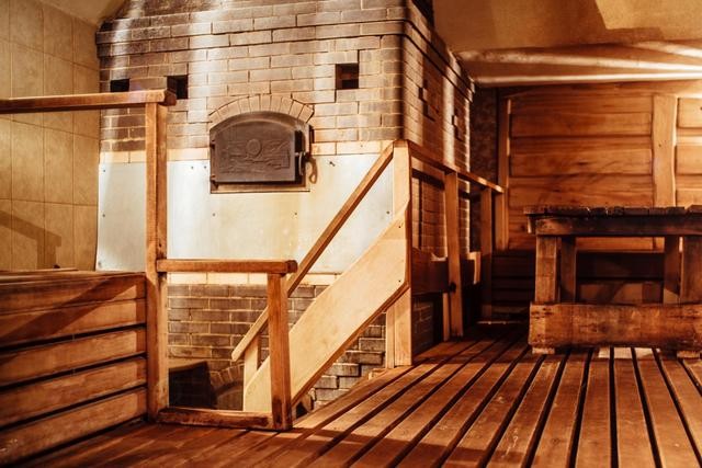Здесь есть отличная русская парная с настоящей дровяной печкой. Чтобы вдоволь насладиться водными процедурами, вы можете приобрести натуральный веник.